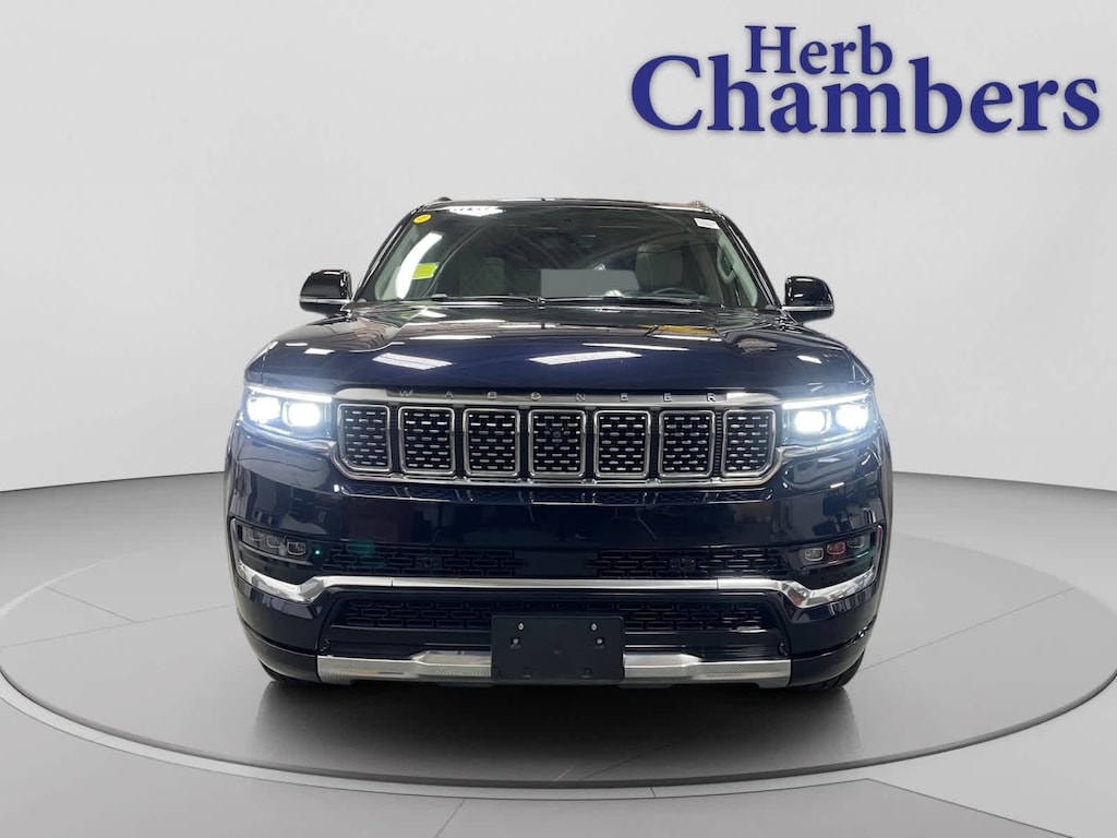 Navigation, Panoramic Roof, 4x4, Power Liftgate, Premium Sound System, Satellite Radio, iPod/MP3 Input, Onboard Communications System, Trailer Hitch, Dual Moonroof, Aluminum Wheels, Remote Engine Start, Dual Zone A/C, Hands-Free Liftgate, Cross-Traffic Alert. Jeep Grand Wagoneer L with Midnight Sky exterior and Sea Salt/Black interior features a Straight 6 Cylinder Engine with 510 HP at 5700 RPM*. Leather Seats, Third Row Seat, MP3 Player, Quad Bucket Seats, Rear Air. CARFAX 1-Owner
